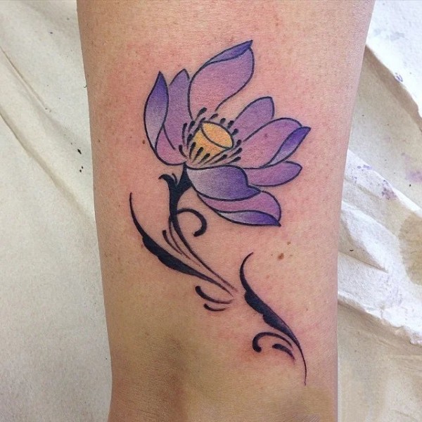 纹在手臂胳膊上的黑灰素花花卉纹身图案欣赏