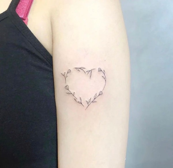 爱心小纹身--一组花花草草组成的心形小清新纹身图案