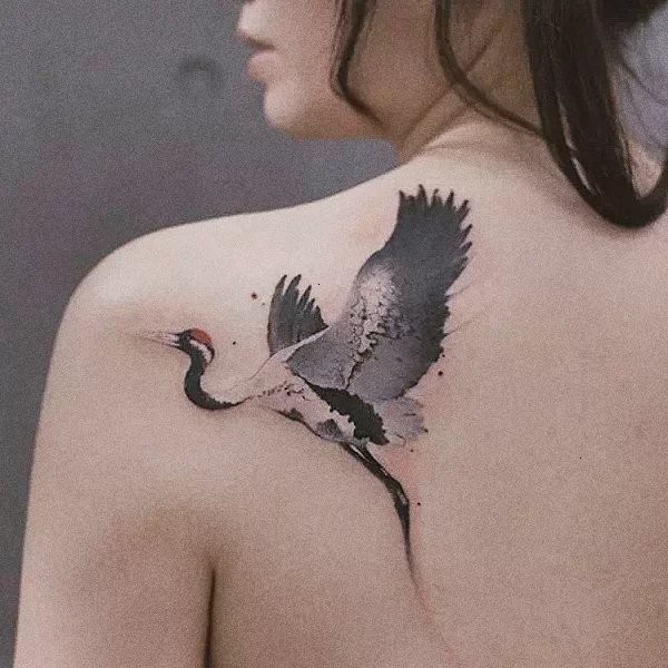 仙鹤纹身 9款传统中国风格的仙鹤纹身图片
