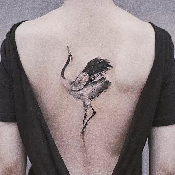 仙鹤纹身 9张水墨中国风的仙鹤纹身图片
