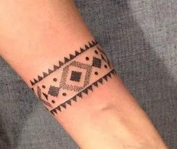 小臂手腕处很有民族风情的手环臂环纹身图案