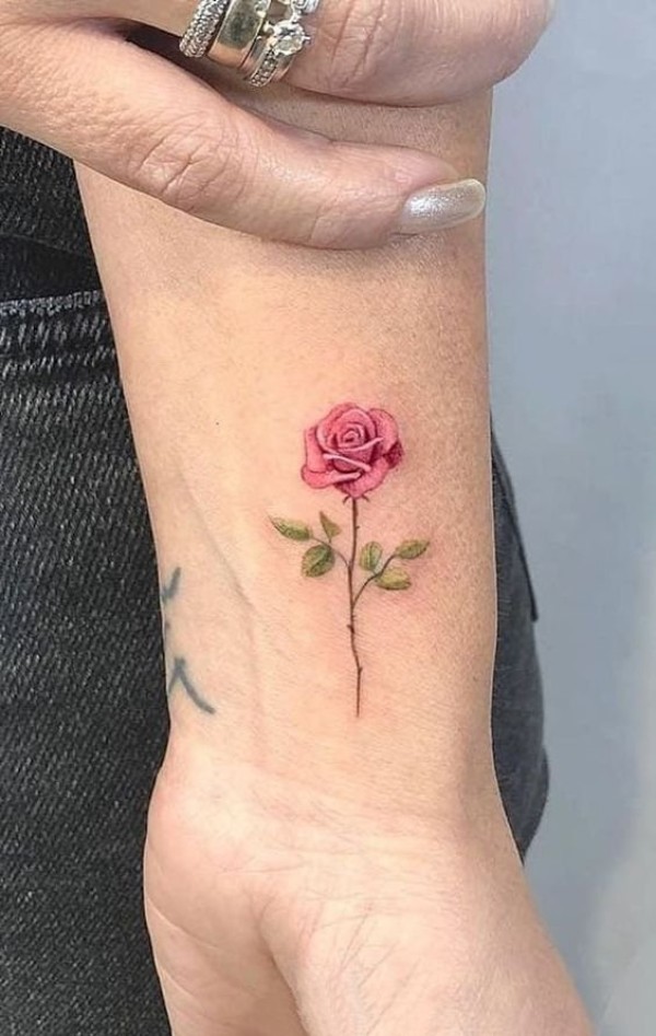 缠绕在小手臂手腕上的花藤纹身图案作品
