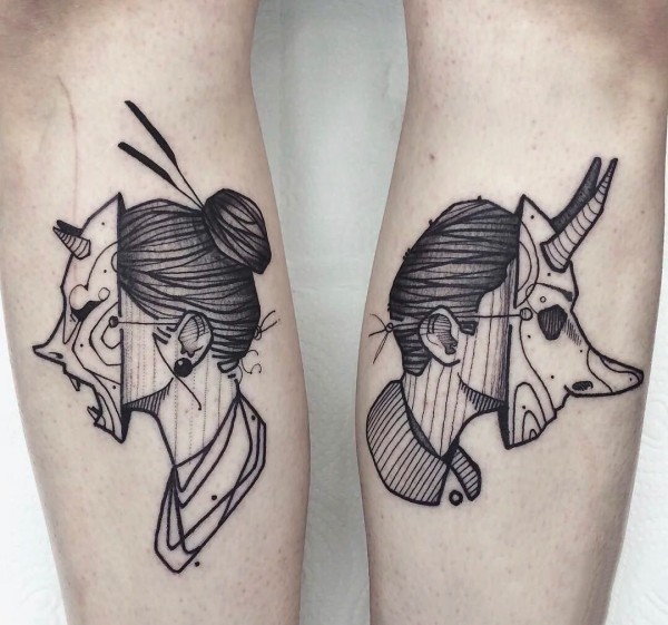 双子座纹身手稿_29张十二星座之双子座纹身图案手稿