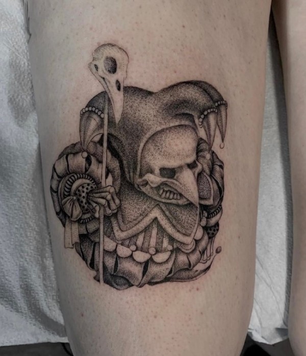 妖魔鬼怪纹身 女生大腿上彩绘的妖魔鬼怪纹身图片
