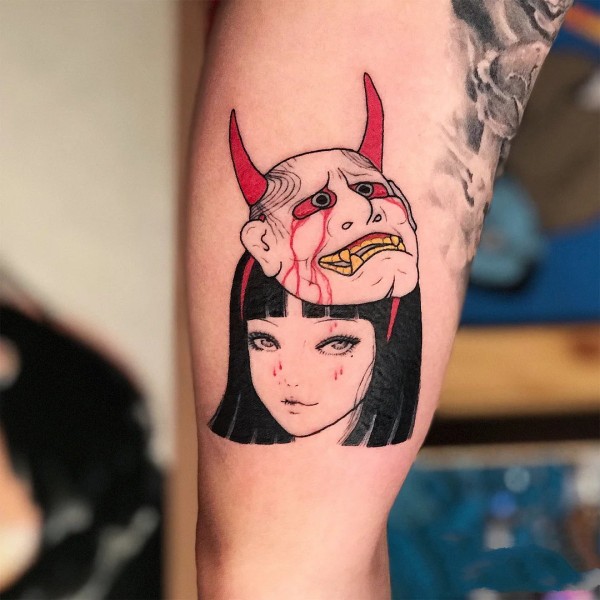漫画纹身 日漫粉色风格的一组女郎纹身图片