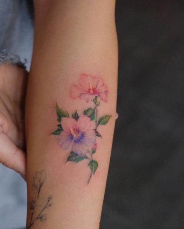 纹在手臂胳膊上的黑灰素花花卉纹身图案欣赏