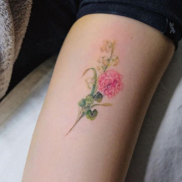 纹在手臂胳膊上的黑灰素花花卉纹身图案欣赏