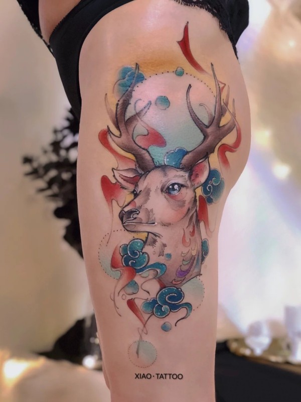 麋鹿纹身作品_14张动物麋鹿纹身图案图片作品欣赏