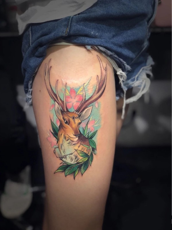小鹿头纹身 9张小清新的小鹿和鹿头纹身图片
