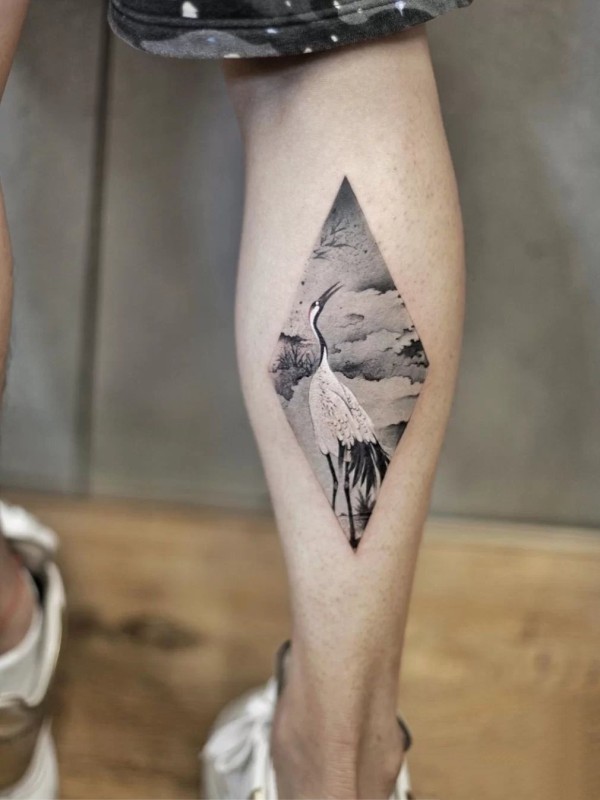 仙鹤纹身--中国风水墨元素的一组仙鹤纹身图案作品