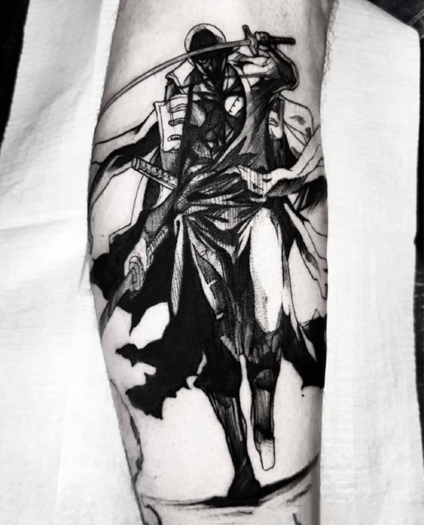 腿部海贼王卡通人物索隆纹身图案