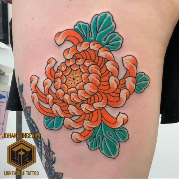传统花腿纹身--18张传统风格的大花腿纹身图案作品