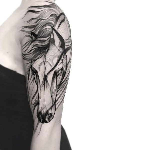 马纹身图案 10款黑灰或彩绘的纹身动物马图案