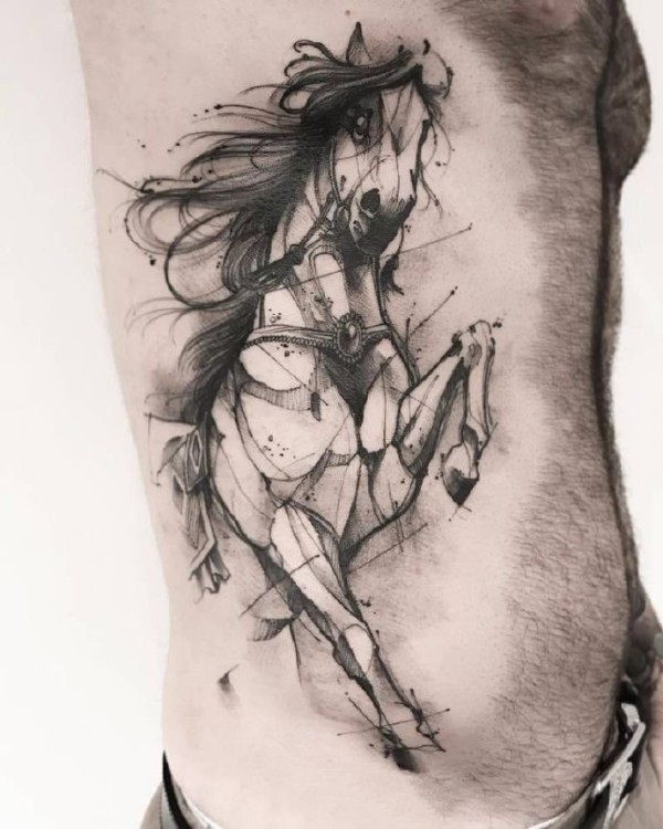 马纹身图案 10款黑灰或彩绘的纹身动物马图案