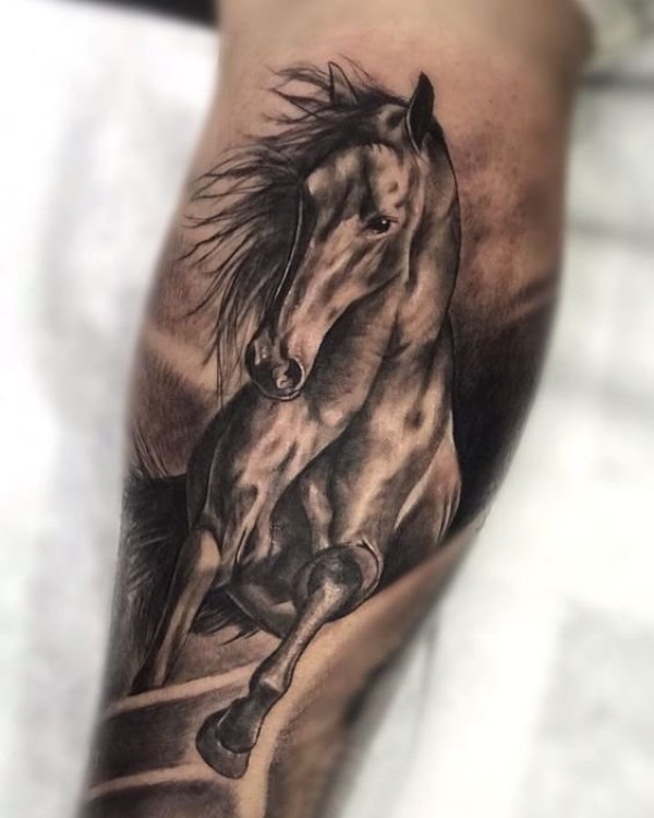 马纹身图案 10款黑灰或彩绘的纹身动物马图案
