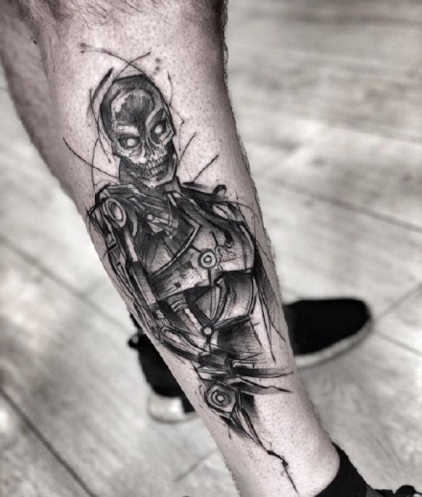 花腿纹身--一组大黑腿纹身图案作品欣赏