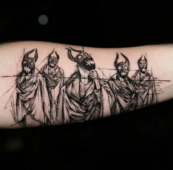 速写线条纹身:一组彩色速写人物纹身图案9张