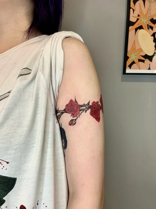 纹身唯美图片 花枝招展的玫瑰纹身图案