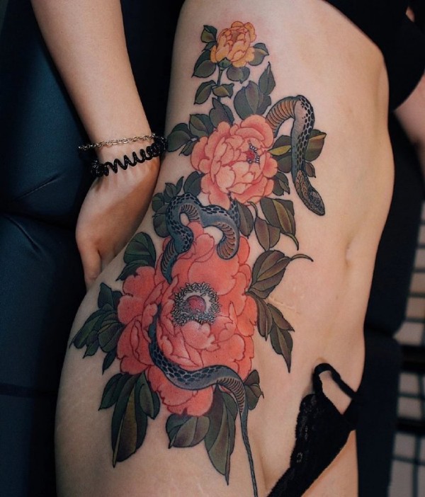 逼真的超现实主义花纹身图案来自纹身师莫拉莱斯