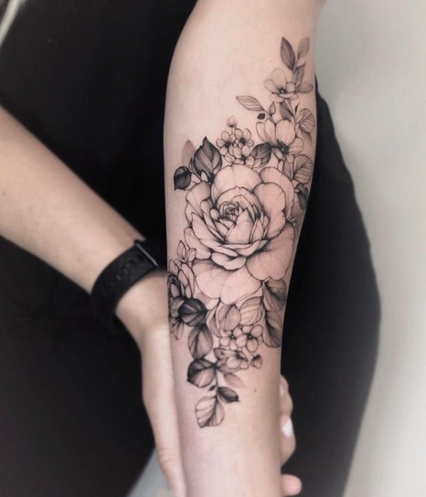 大臂素花纹身 9款女士的大臂黑灰花朵植物纹身图案