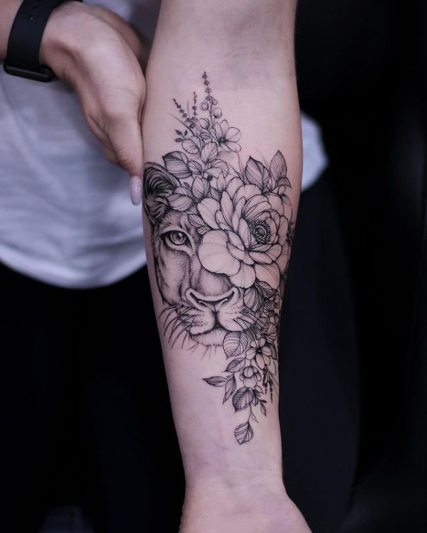 大臂素花纹身 9款女士的大臂黑灰花朵植物纹身图案