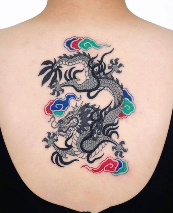 披肩龙纹身图案图片_龙纹身图案大全_纹身图吧