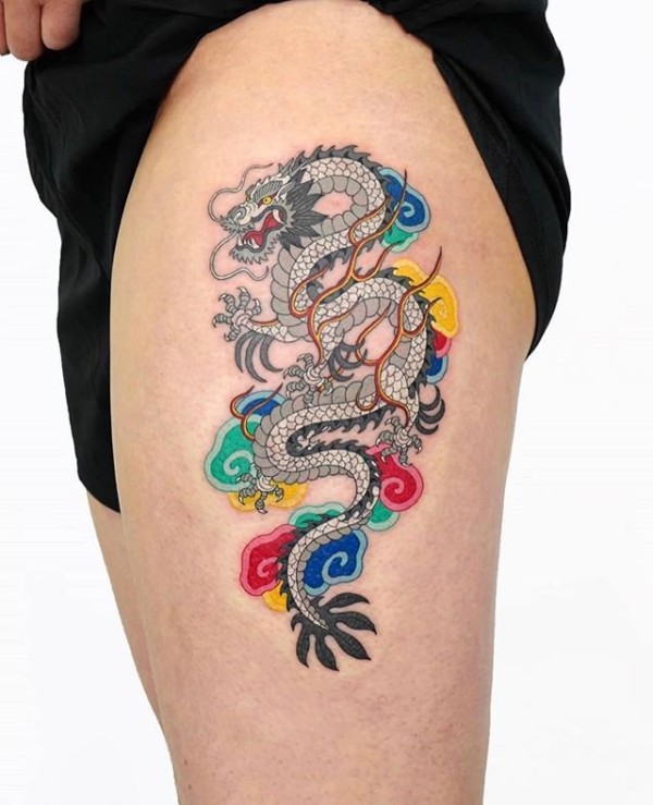 披肩龙纹身图案图片_龙纹身图案大全_纹身图吧