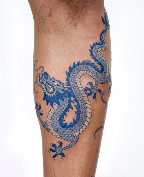小腿部中国古代神兽龙纹身_龙纹身图案大全_纹身图吧