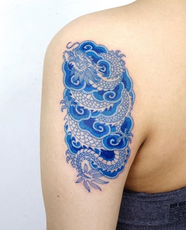 披肩龙纹身图案图片_龙纹身图案大全_纹身图吧