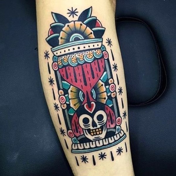 沙漏图案纹身 象征时间流逝的9张沙漏纹身图案