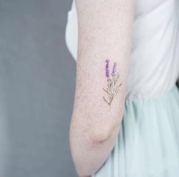纹在手臂胳膊上的黑灰素花花卉纹身图案欣赏