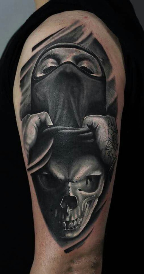 日本武士面具纹身 面容凶狠的日本武士纹身图案
