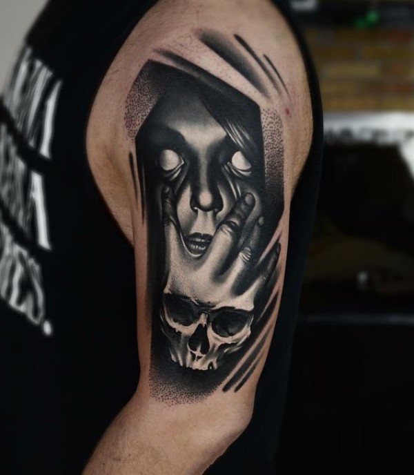 般若面具纹身 多款色调暗沉的般若面具纹身图案