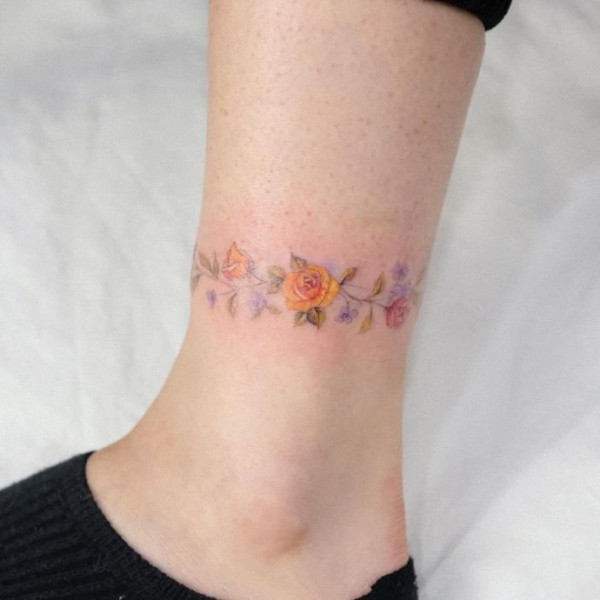 性感花朵纹身--女性大腿侧部性感的花朵纹身