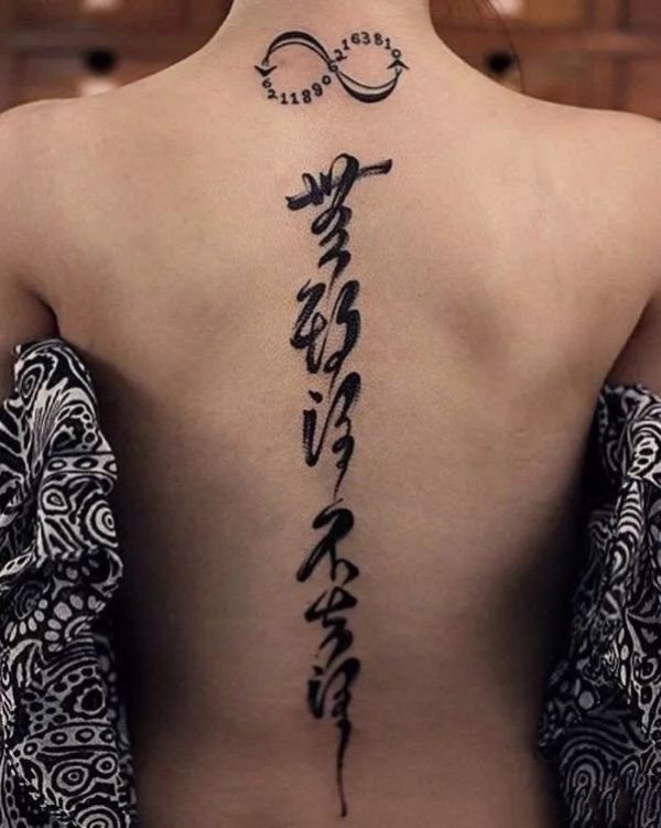 水墨书法风格的纹身-每个字背后都蕴含着深刻的含义
