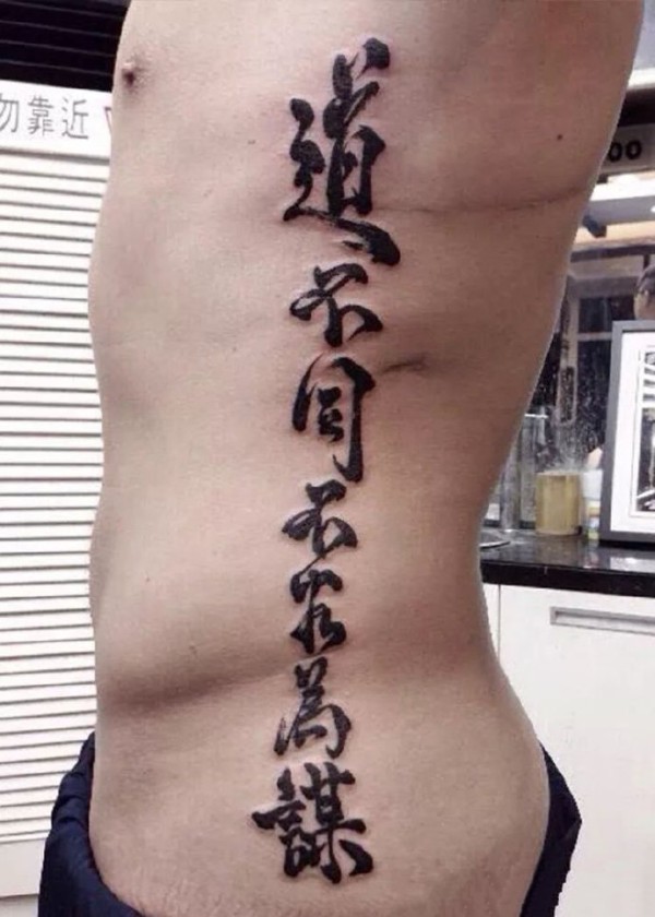 书法纹身 侧腰等部位的中文书法汉字纹身图案