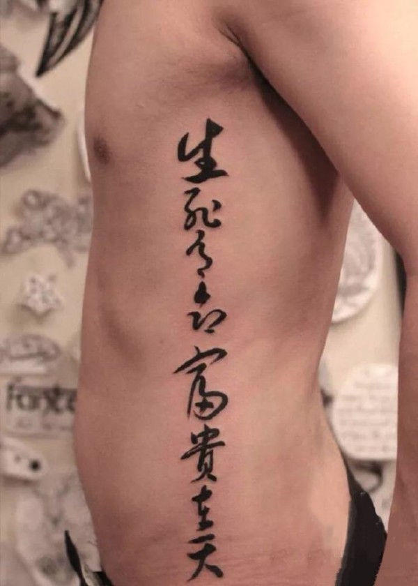 书法纹身 侧腰等部位的中文书法汉字纹身图案