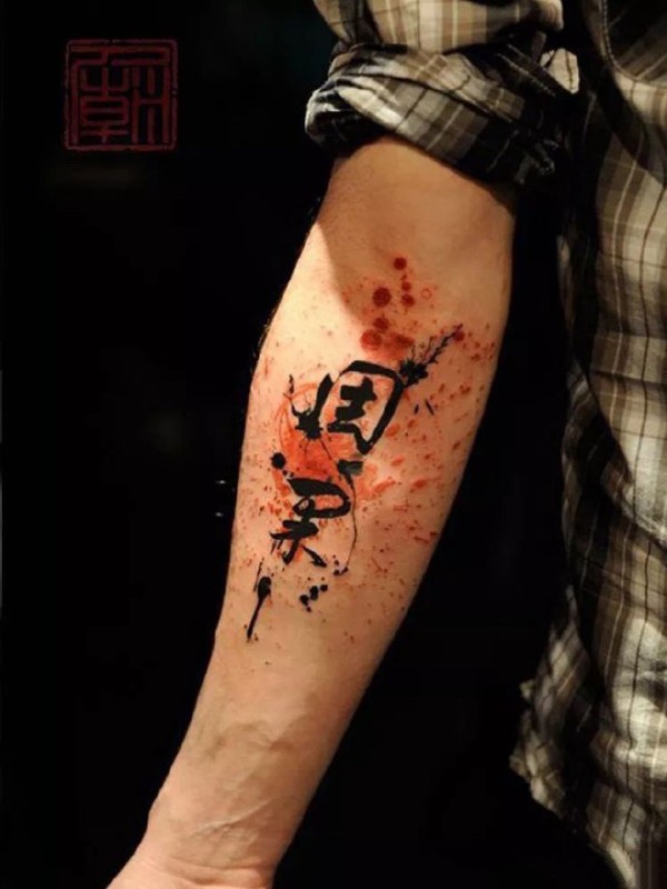 水墨书法风格的纹身-每个字背后都蕴含着深刻的含义
