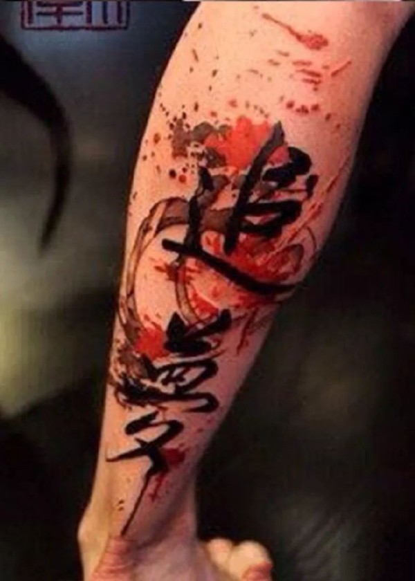 水墨书法风格的纹身-每个字背后都蕴含着深刻的含义