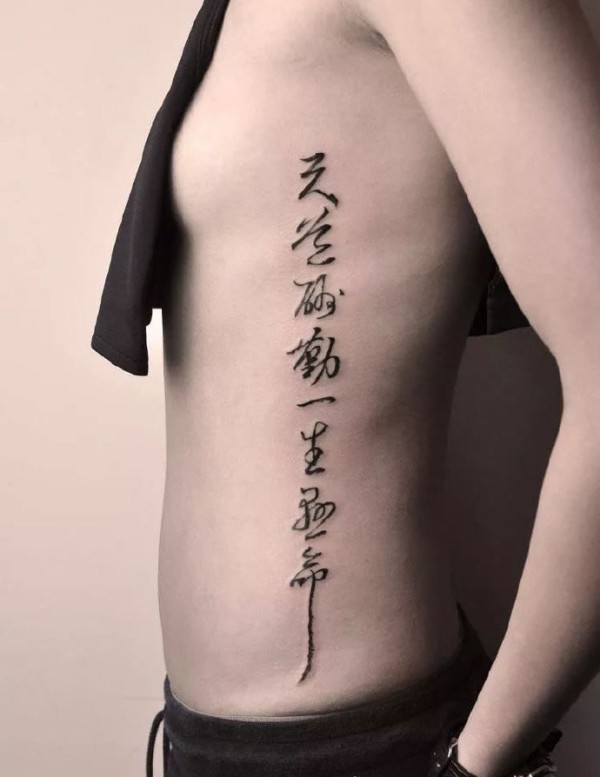 书法纹身 侧腰等部位的中文书法汉字纹身图案