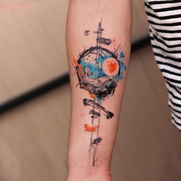 一组大胆的水彩泼墨彩绘技巧渐变纹身图案大全