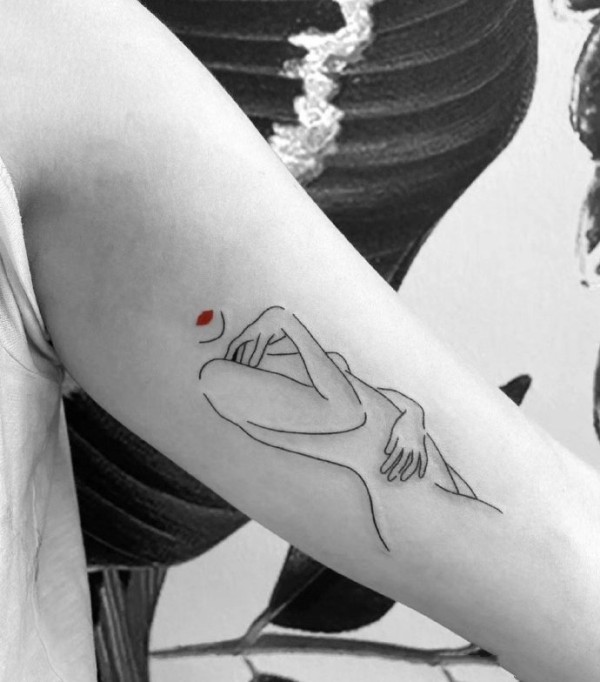 以红色作点缀的简约线条纹身图片9张