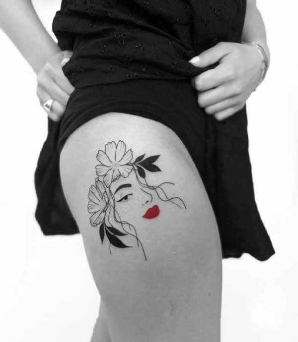 以红色作点缀的简约线条纹身图片9张
