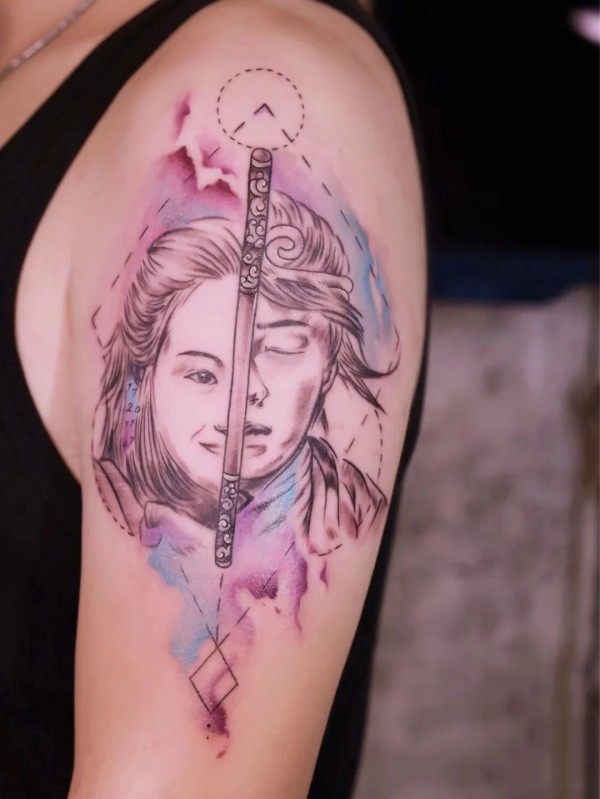 15款水彩纹身日本艺伎纹身人物名妓纹身图案