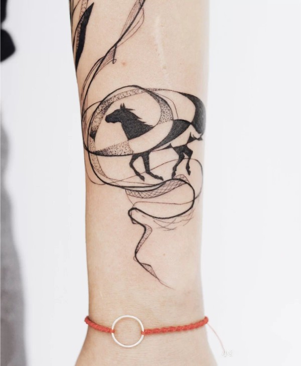 黑色抽象线条纹身水彩纹身的故事涂鸦纹身图案