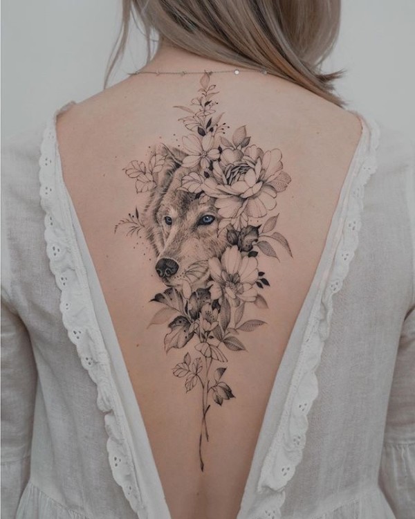 女性各部位的9款黑灰色素花纹身图片