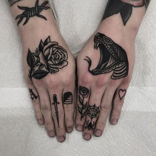 手背oldschool图案_15张手背上的oldschool纹身图案作品