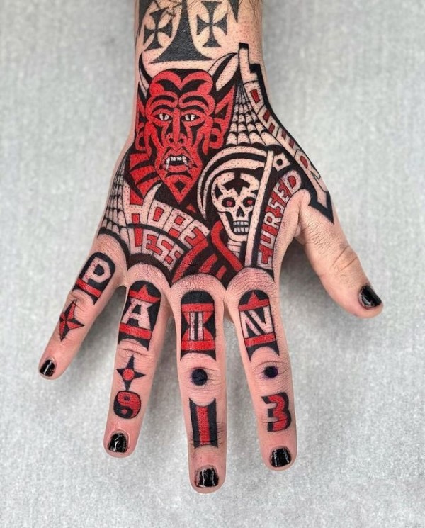 手背oldschool图案_15张手背上的oldschool纹身图案作品