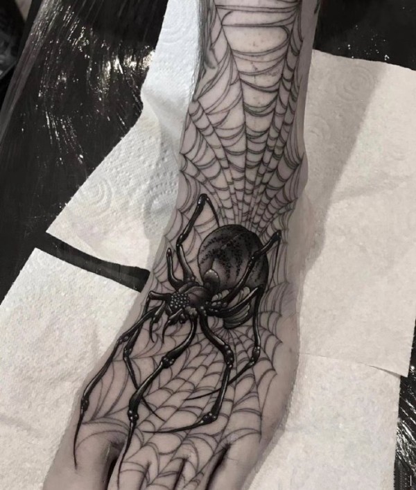 男生超爱的一组黑灰蜘蛛纹身图片