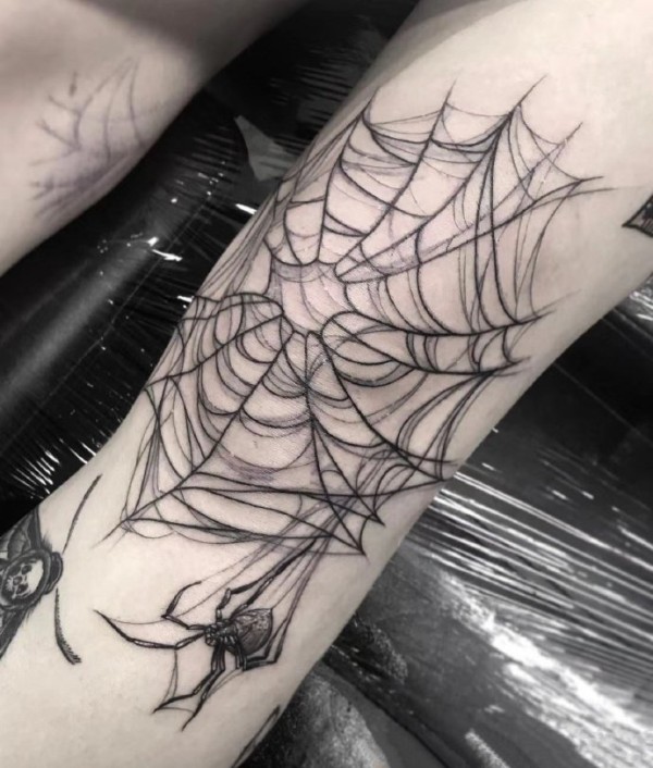 蜘蛛网纹身图案 黑灰色调个性十足的蜘蛛或蜘蛛网纹身图案